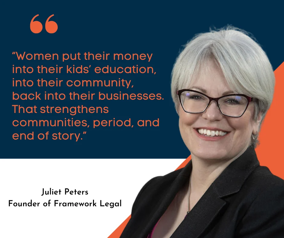 One of my favorite quotes by Juliet Peters “Women put their money into their kids’ education, into their community, back into their businesses. That strengthens communities, period, and end of story.”